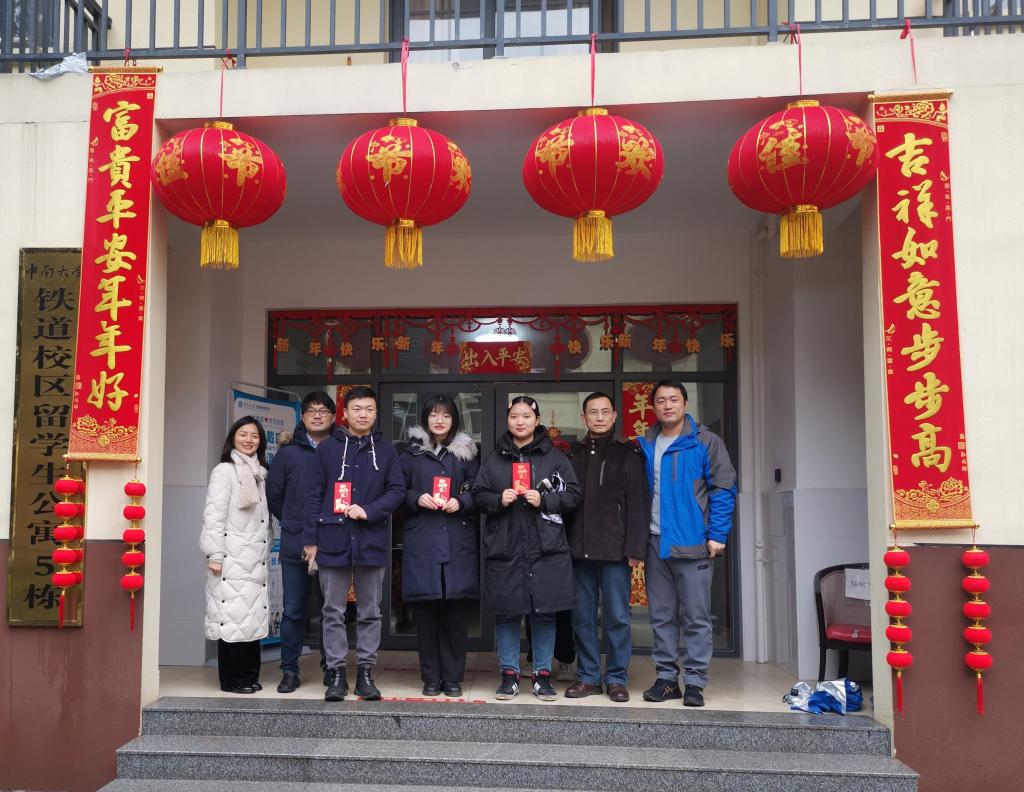 2022年1月25日上午,受日本无码a片党委委托,日本无码a片党委副书记宋晓东、关工委常务副主任符卓、研究生导师周伟及辅导员张佳琪一行来到留校学生集中住宿区铁道校区留学生公寓5栋,看望慰问受疫情影响寒假留校的同学。 宋...