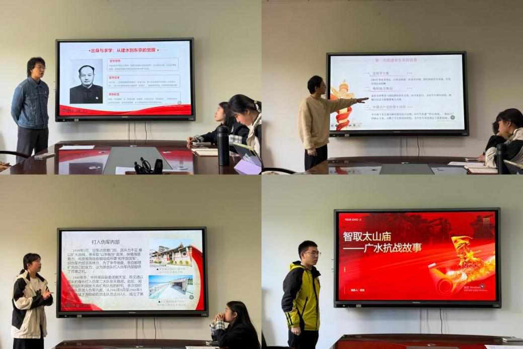 随后,支部每个成员都分享了家乡的抗日故事,或是聚焦正面战场,分享了家乡地区曾发生的激烈战役背景与军民坚守的历史,展现了先烈们保家卫国的壮烈气概;或是围绕敌后战场展开,讲述了家乡群众与抗日力量紧密配合,通过隐蔽斗争、支援前线等方式参与抗战的事迹,凸显了全民抗战的强大力量。