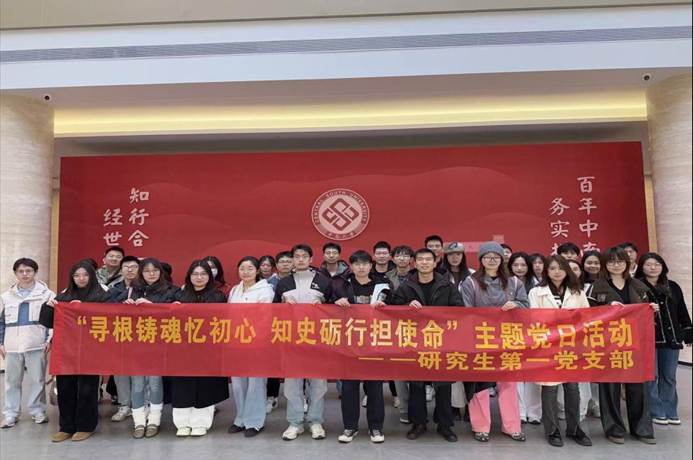 参观结束后,支部全体党员在校史馆大厅合影留念,为此次党日活动留下庄重纪念,也表达了对传承中南精神、肩负时代使命的共同承诺。此次主题党日活动既是一堂生动的校史学习课,也是一次深刻的思想洗礼。同志们纷纷表示,将从学校发展历程中汲取奋进力量,坚定理想信念,立足科研与学习实际,知史砺行、勇担使命,以更加饱满的精神状态投身学习科研和实践服务中。
