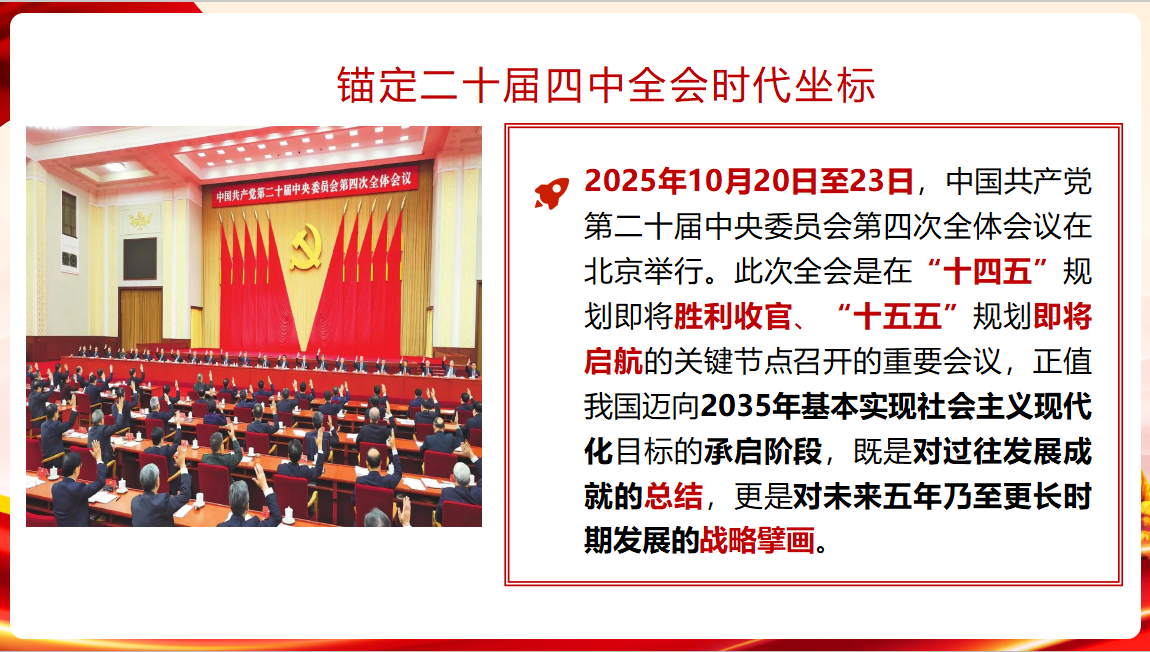 第一小组以“深学全会精神,勇担发展使命”为主题,阐释了《中共中央关于制定国民经济和社会发展第十五个五年规划的建议》的深层战略意义。第二小组分享的主题是“深学细悟笃行,凝聚奋进力量”,分析青年助力高质量发展的行动方向,鼓励大家深研专业知识,积极投身科研项目锤炼创新本领,将个人理想深度融入民族复兴伟业。第三小组围绕“深刻领悟全会核心要义,凝聚奋进力量”,明晰党的二十届四中全会精神的时代背景以及重大意义,另外分析了胡耀邦同志诞辰110周年讲话与党的二十届四中全会精神的契合之处,强调要学习胡耀邦同志实事求是、勇于开拓的探索精神。