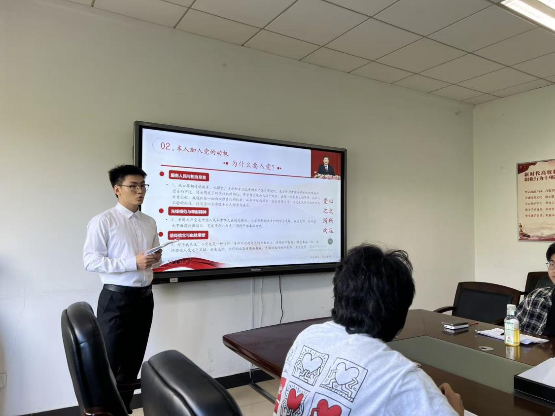 在个人陈述环节,14名拟发展对象按会前抽签顺序依次上台,围绕对党的认识、入党动机、理论学习情况、现实表现、自身存在的不足及未来努力方向进行了全面而深刻的汇报。他们的陈述情真意切,充分表达了对加入中国共产党的强烈愿望和坚定决心。每位拟发展对象陈述结束后,支部党员同志围绕党的理论知识、时事政治、先锋模范作用和未来发展规划等关键方面进行了提问,拟发展对象们思维敏捷、沉着应答,结合自身经历阐述了见解,展现了良好的理论功底和思想觉悟。