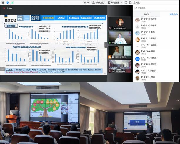 物流工程系主任张得志教授主持,采用线上线下并行的方式进行,参与此次报告的老师及研究生近300人。