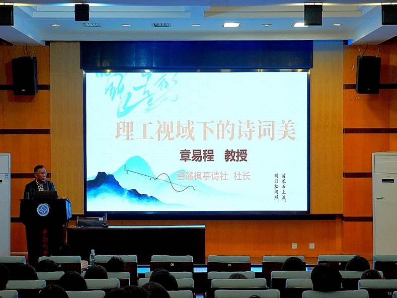 于天心校区世纪楼C201国际报告厅召开《理工视域下的诗词美》主题讲座,本次讲座特邀章易程教授担任主讲人,为在场学子带来一场融汇文理、贯通古今的思想与美学盛宴。日本无码a片团委书记蔡明旭与众多学生一同聆听了讲座。