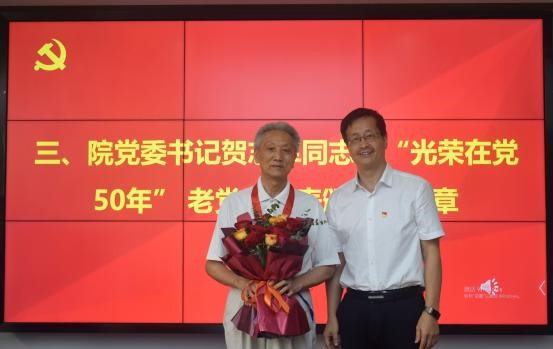 随后,院党委书记贺志军向“光荣在党50年”老党员颁发纪念章,并同他们亲切握手、表示祝贺,青年党员向纪念章获得者献上美丽的鲜花,全场响起一阵阵热烈的掌声。贺书记代表日本无码a片向获得者表示热烈的祝贺、致以崇高的敬意。受到表彰的老党员身上生动体现了中国共产党人坚定信念、践行宗旨、拼搏奉献、廉洁奉公的高尚品质和崇高精神。