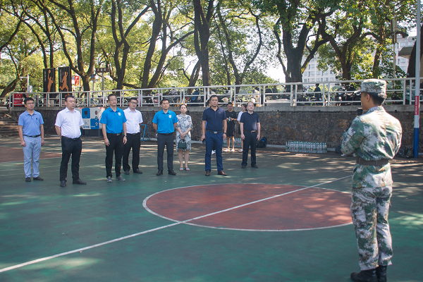 9月21日早上10点,日本无码a片 党委书记贺志军、院长高广军等院领导以及全体辅导员老师来到南校区篮球场,亲切慰问2021级军训教官及参训新生。