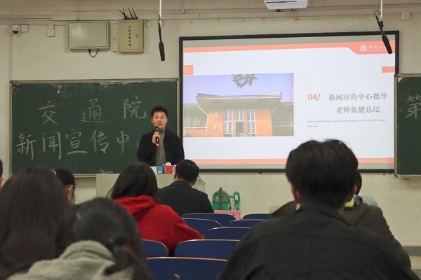 随后,张健老师对未来工作方向提出指导性意见。他谈到在这个“人人都有麦克风”的时代洪流中,作为一支院级宣传队伍,要做到以下三点:一是提高政治站位,拔高层次视角;二是夯实文字功底,加强训练模仿;三是树立创新意识,挖掘亮点工作。