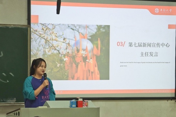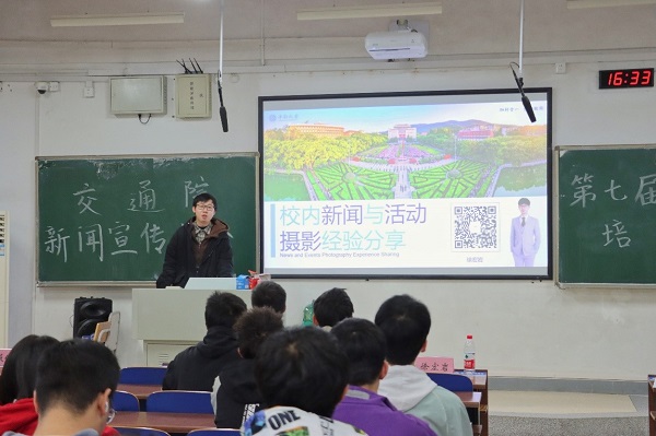 经过短暂的休息,下午4点30分,第七届新闻宣传中心宣传能力培训会准时开始。会议邀请了机电院研究生辅导员徐宏岩和第六届新闻宣传中心主任彭薇仪为大家作新闻摄影和新媒体宣传培训,此外,交通院20级、21级的班级宣传委员、团学会和心助会的宣传干事都加入到此次培训。