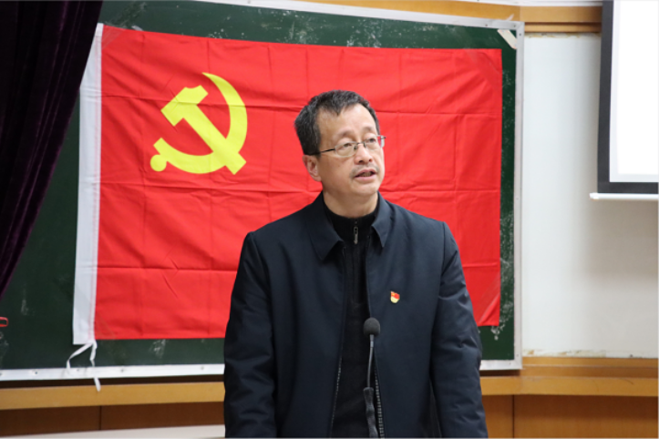 会议伊始,张佳琪同志简单介绍了会议流程,紧接着全体起立,奏唱国际歌,全体党员同志以及预备党员在贺书记的带领下宣读入党誓词。