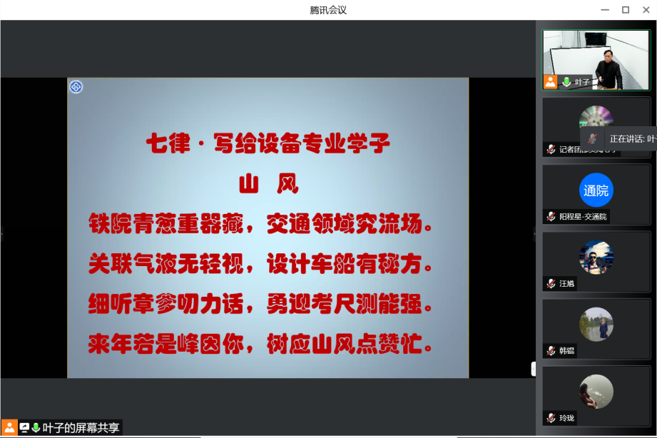 思政中心举行了一场线上线下别开生面的课程思政教学竞赛。学校教学督导、马克思主义日本无码a片谭希培教授、日本无码a片党委书记贺志军教授、日本无码a片副院长刘辉教授、工会主席校督导罗意平教授、党委委员叶峻青副教授、院督导组组长毛成辉副教授出席本次会议并担任评委。会议由日本无码a片副院长陈维亚主持,评委们在交通楼304,线下参赛选手在交通楼203录播室进行比赛,还有两位老师由于疫情防控需要线上参赛。其余教师通过腾讯会议观看此次比赛。