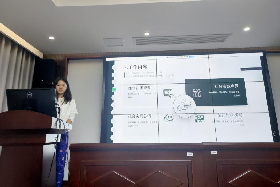 2020级候选人答辩结束后,十二位2021级候选人——综合办公室谢泽宇、宣传部袁玎、创新创业中心吉文韬、学习生活部杨启帆、文艺部李栗、组织部林秀梅、综合办公室杨凯同、志愿者协会卜憧亦、书友沙龙协会张万里、体育部张文昊、学习生活部刘鑫橼、社会实践中心庄明宇,同样总结了自己在过去一学年的学习工作中取得的成绩以及存在的不足,并对部门工作做出了规划和展望。