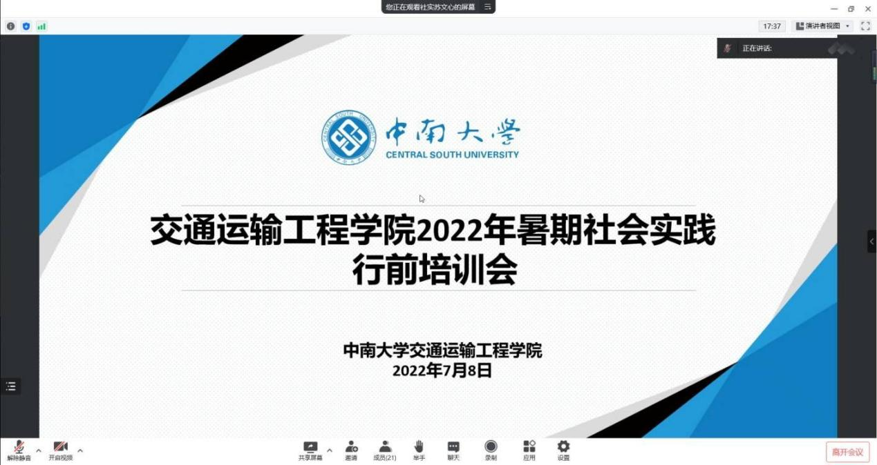 以线上形式顺利举办2022年暑期社会实践行前培训会。交通院团委副书记张健老师、郑繁简老师和交通院各暑期社会实践团队参加了本次会议。会议邀请了2021年日本无码a片