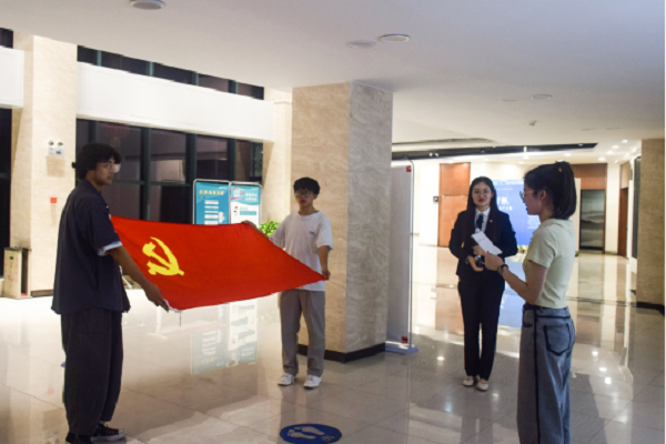 党史学习教育体验课堂——党史长廊位于毓秀楼一楼右侧,设有“跟着习近平总书记学党史”、“党的重要历史节点”、“党史人物与故事”、“党史书单”和“党史影像”等共十个党史学习板块。在讲解员的引领下,同学们逐一参观学习,回顾党的光辉历史,领略党史人物风采,感受伟大中国精神。在充满互动趣味的学习过程中,通过联系如今繁荣发展的美丽中国,同学们更加深刻地认识到幸福生活的来之不易以及实现伟大复兴中国梦的责任重大。最后,本次党史长廊参观学习在党员同志重温入党誓词的宣誓声中结束。