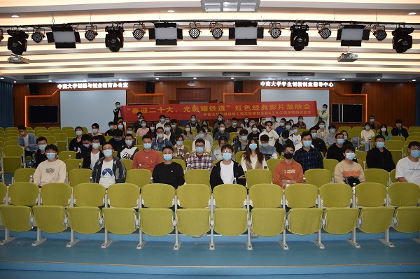 研究生会联合土木工程日本无码a片研究生会组织的“喜迎二十大,光影耀铁道”红色经典电影放映会活动在铁道校区双创中心409厅顺利开展。两院同学一同观看红色电影《1921》,重温第一批中国共产党人的感人故事,感受红色经典作品的时代魅力,喜迎党的二十大胜利召开。