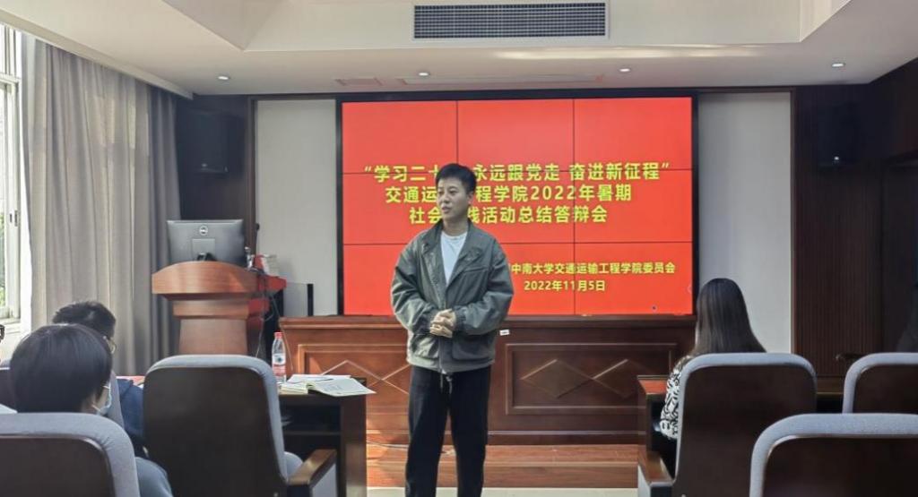 六支队伍答辩完成后,张健老师作总结发言。他充分肯定了各实践团的实践成果,并指出各团队的实习实践有深度、有温度、有热度,充分展现了交通院学子的风貌。张老师结合自己的实践经历,对同学们并提出三点建议:一是要充分了解实践地的历史渊源、地理位置、人文环境等,在此基础上带着对当地发展现存问题的思考积极建言献策,为当地带去中南学子的智慧;二是要注重反思总结,查漏补缺,积极优秀团队看齐;三是与实践地保持长期稳定联系,为打造实践基地奠定良好基础。