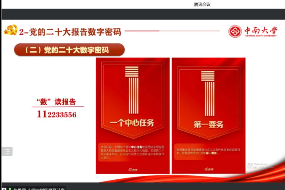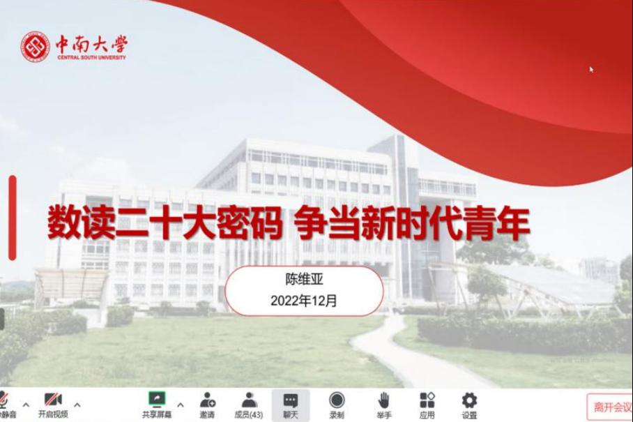12月28日下午16:30,日本无码a片党委委员、副院长陈维亚教授线上带领交通运输与物流工程学生党支部、博士研究生第六党支部开展了“数读二十大密码,争当新时代青年”主题党课。此次党课由交通运输与物流工程学生党支部书记张佳琪老师主持,两个党支部全体同志参加。