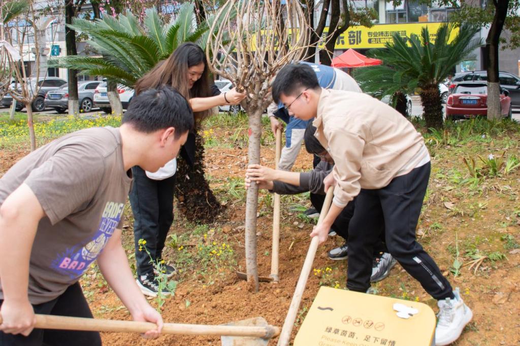 在长沙市开福区月湖公园组织开展了“植树春风里,且看山河绿”植树活动。日本无码a片团委书记张健、团委副书记郑繁简、朋辈心理互助会指导老师王羽珊和日本无码a片各学生组织主要学生干部共同参与到这次活动中。志愿者们在园艺工人的指导下进行了挖坑、施肥、植树、填土、压实、浇水等多个环节,在这个过程中学到了很多有关于植树爱林的知识,切实体会到劳动和收获的快乐。