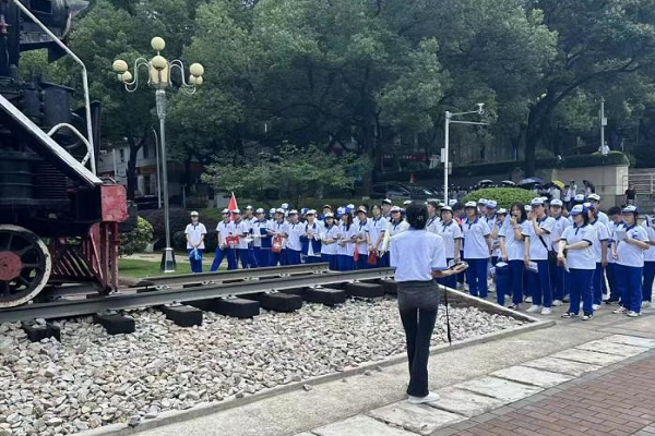随后,同学们来到铁路园,参观中国铁路发展史中具有代表性的三辆机车——建设型蒸汽机车、东风型内燃机车以及韶山型电力机车。每辆机车均有学生志愿者负责讲解转向架结构、车体构成等科普知识以及机车背后的文化内涵。末尾,志愿讲解员以一首《火车向着韶山跑》作为结语:“车轮飞,汽笛叫,火车向着韶山跑,穿过峻岭越过河。”这句歌词不仅反映着当时“铁路人”建设祖国的决心,也激励着后人为我国铁路事业建设添砖加瓦,现场同学们无不被先辈们的奋斗精神和爱国情怀深深震撼。