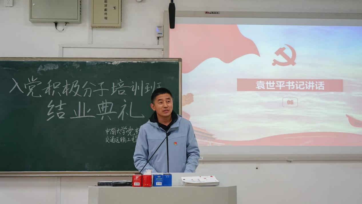 典礼第五项,袁世平书记发表讲话。他首先对顺利结业的学员们表示祝贺,并对学员们提出三点要求:一是端正入党动机,坚定不移地听党话、跟党走;二是坚定理想信念,努力成长为党、国家和人民所期盼的有志青年;三是锤炼个人本领,从身边小事做起,积累专业知识与实践技能。他希望,全体学员能够胸怀“国之大者”,怀揣家国情怀,在实现个人理想的同时为社会建设奉献力量。