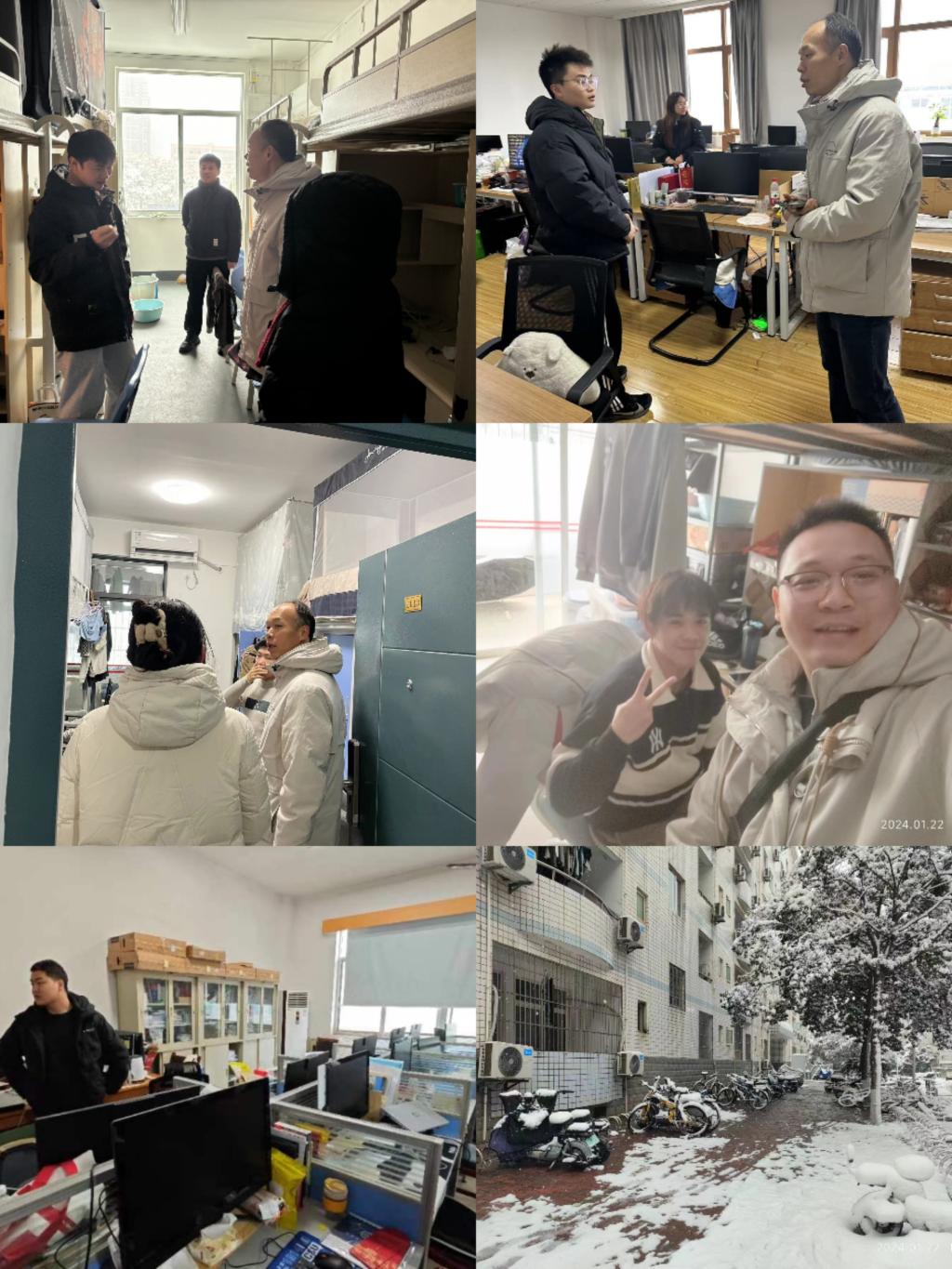 22日上午,日本无码a片党委副书记李苑、各年级辅导员深入研究生实验室、学生寝室以及学生宿舍楼周边,切实开展安全风险隐患集中排查,做好雨雪冰冻等极端天气下的出行安全教育。