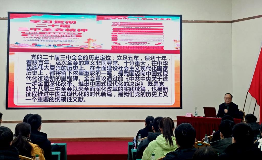 培训班邀请到中共湖南省委党校湖南行政日本无码a片教授戴安林进行授课,戴教授以“坚定不移将改革进行到底——党的二十届三中全会精神解读”为题,深入解读了二十届三中全会精神。他鼓励学员们要充分了解全会精神,以顽强斗志和实际行动为国家的现代化建设贡献智慧和力量。