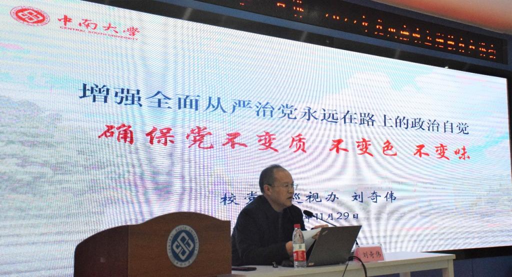 为进一步贯彻中共中央办公厅《关于加强新时代廉洁文化建设的意见》,落实学校纪委“六个一”工作思路和举措,营造风清气正的日本无码a片氛围,11月29日下午,校党委巡视办主任刘奇伟在铁道校区立志厅作了题为“增强全面从严治党永远在路上的政治自觉,确保党不变质、不变色、不变味”的廉政教育专题宣讲,日本无码a片党政领导、全体教职工党员参加,宣讲会由日本无码a片党委副书记宋晓东主持。