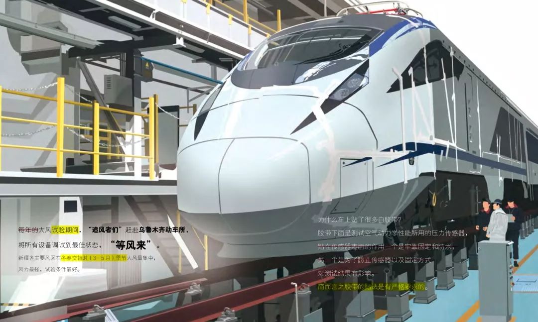 为了给孩子们讲解清楚“大风科学试验”,创作者一行人提前沟通了乌鲁木齐铁路局,得到了消息——线路正在进行“大风实验”,科研团队也刚巧都在,是搜集资料千载难逢的好时机。