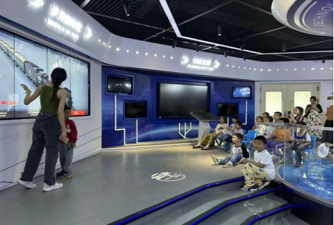 先进轨道交通科普馆。科普馆的志愿者以时代的车轮为主题,逐一讲解了馆内各部分的内容。在讲解伊始,大家一同观看了“风一样的团队”宣传片。观看完宣传片后,志愿者随即向大家展示了列车发展历史的重要阶段(蒸汽机车,内燃机车,电力机车,动车组),通过对机车动力牵引的介绍引出列车的发展与时代发展,国家发展同频共振,人民铁路永远服务与人民的中心思想。同时通过触摸屏等现代化展示技术,介绍列车各部件的组成和结构,使研学人员对列车的基本构造与运行原理有一个初步的认识。