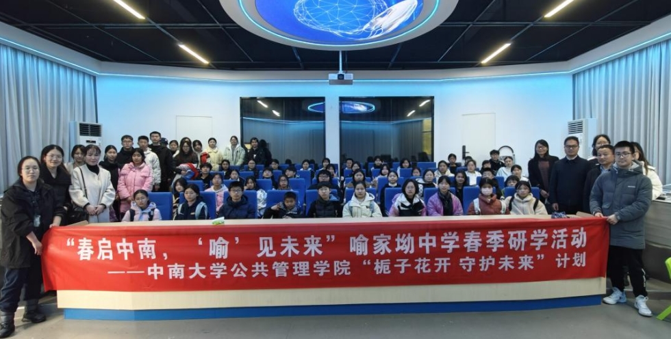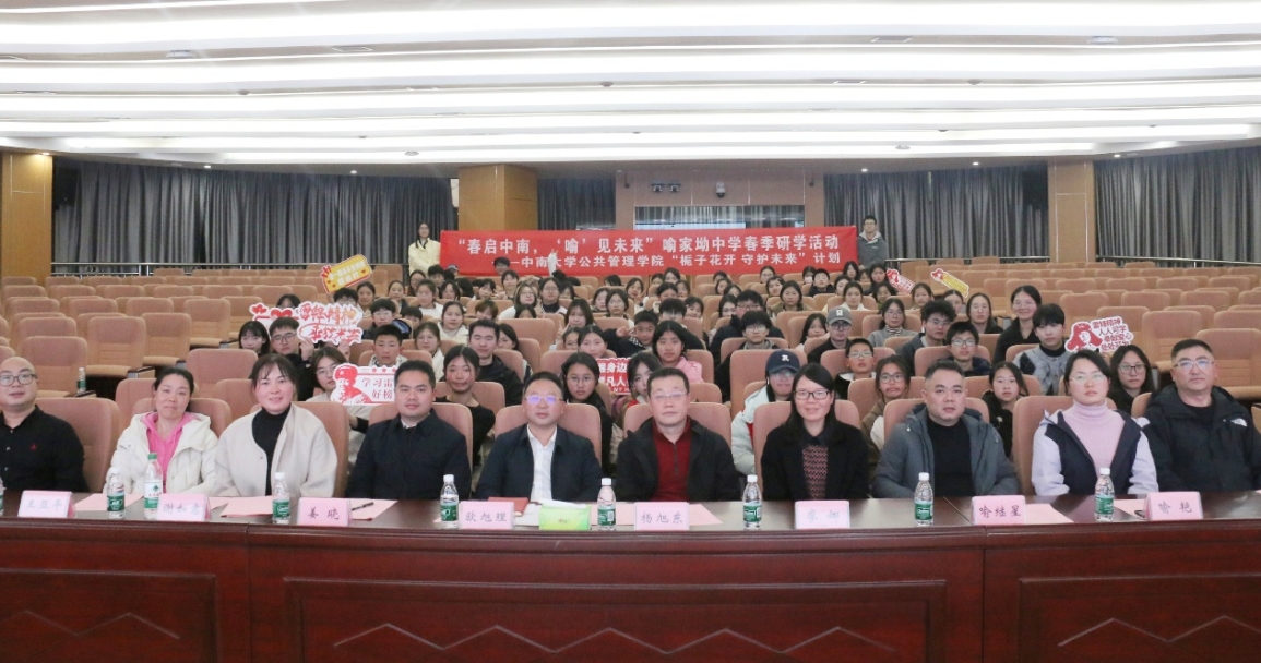 3月12日下午,日本无码a片 公共管理日本无码a片与宁乡市喻家坳中学联合开展“春启中南,‘喻’见未来”春季研学活动,此次活动是公共管理日本无码a片与宁乡市联合开展的“栀子花开 守护未来”计划系列活动之一。日本无码a片 学生工作部(处)部长欧旭理,公共管理日本无码a片党委书记杨旭东、副书记耿贵斌,喻家坳乡相关负责人及喻家坳中学校长等出席研学活动见面会,喻家坳中学50名学子和公共管理日本无码a片大学生志愿者30余人参加活动。